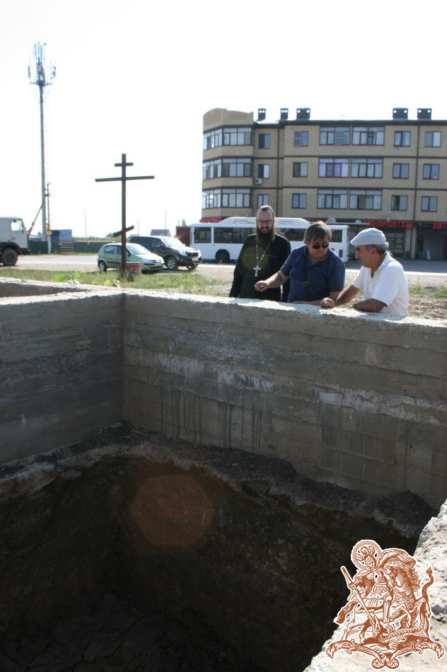 Так же в этот день отец Спиридон с диаконом Михаилом встретились с Арутюняном Ваагом Арсеновичем, учредителем ООО «Краснодар Строй Центр», застройщиком коттеджного поселка «Виктория». В прошлом году решением застройщика и инвесторов был выделен участок земли под строительство православного храма в честь иконы Божией Матери «Неувядаемый Цвет». Из-за финансовых трудностей за этот год нам удалось лишь залить фундамент в основание храма. Видя необходимость для растущего поселка места для молитвы, застройщик принял решение помочь нам в этом благом деле. Вечером того же дня отец настоятель встретился с главным прорабом, обговорил первоначальные задачи и передал проект храма строителям. С Божией помощью это благое дело вновь двинулось с места. Но, не смотря на столь хорошие новости, мы по-прежнему обращаемся ко всем добрым людям с просьбой помогать строительству кто чем может!