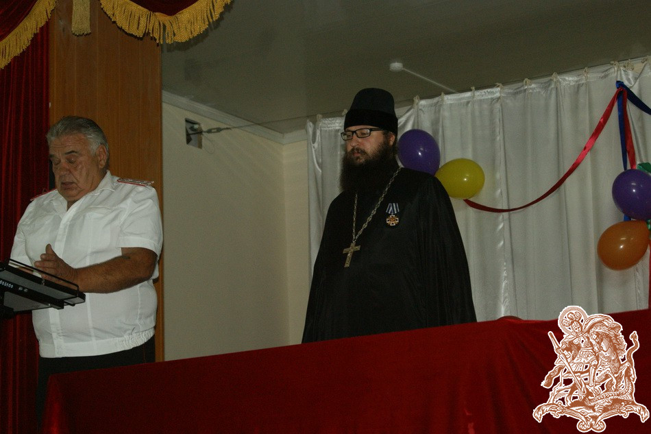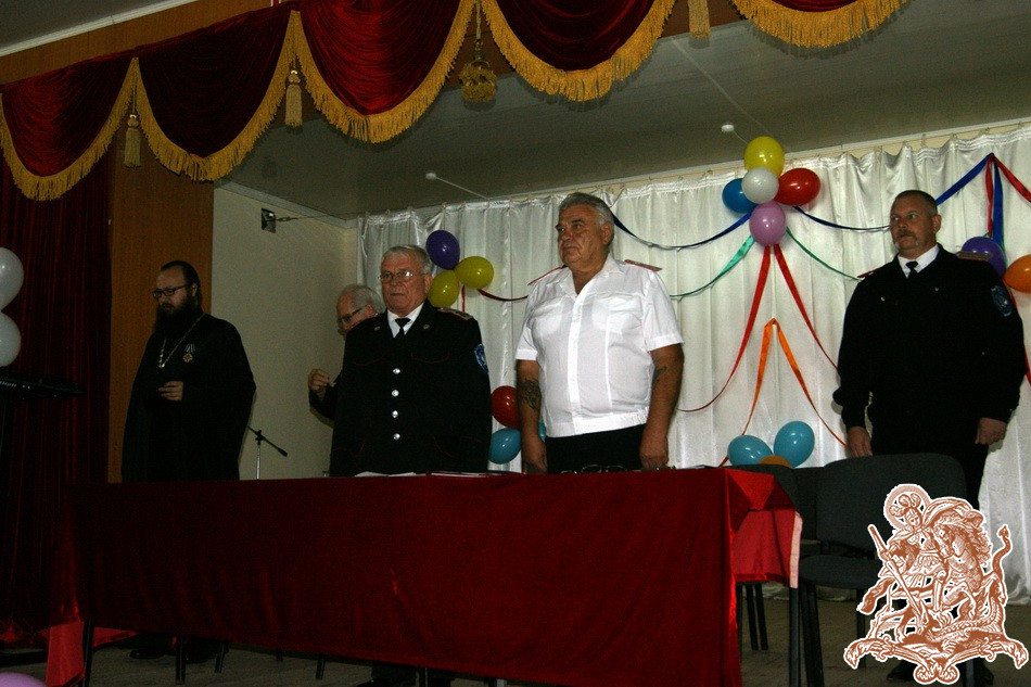 Почетными участниками отчетного сбора были представители храма Святого Георгия Победоносца, его настоятель и духовник ХКО «Курень Каширинский» иеромонах Спиридон (Федотов) и пономарь Георгий Валентинович Дубских. Выступив с заключительной речью, отец Спиридон и Георгий поблагодарили казаков Каширинского куреня за помощь в сдаче донорской крови сыну Георгия Валентиновича, за помощь в строительных работах, а также ликвидации последствий зимнего ледяного дождя. Помимо похвальных слов отец Спиридон отметил отрицательные моменты в деле воцерковления казаков хуторского общества, призвал членов куреня больше внимания уделять духовной стороне человеческой жизни.