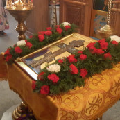 Основной праздник этого дня называется “Происхождение (изнесение) честных древ Животворящего Креста Господня”. Впрочем, таинственное выражение “происхождение древ Креста” обозначает просто крестный ход.