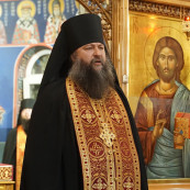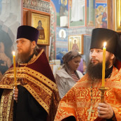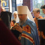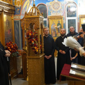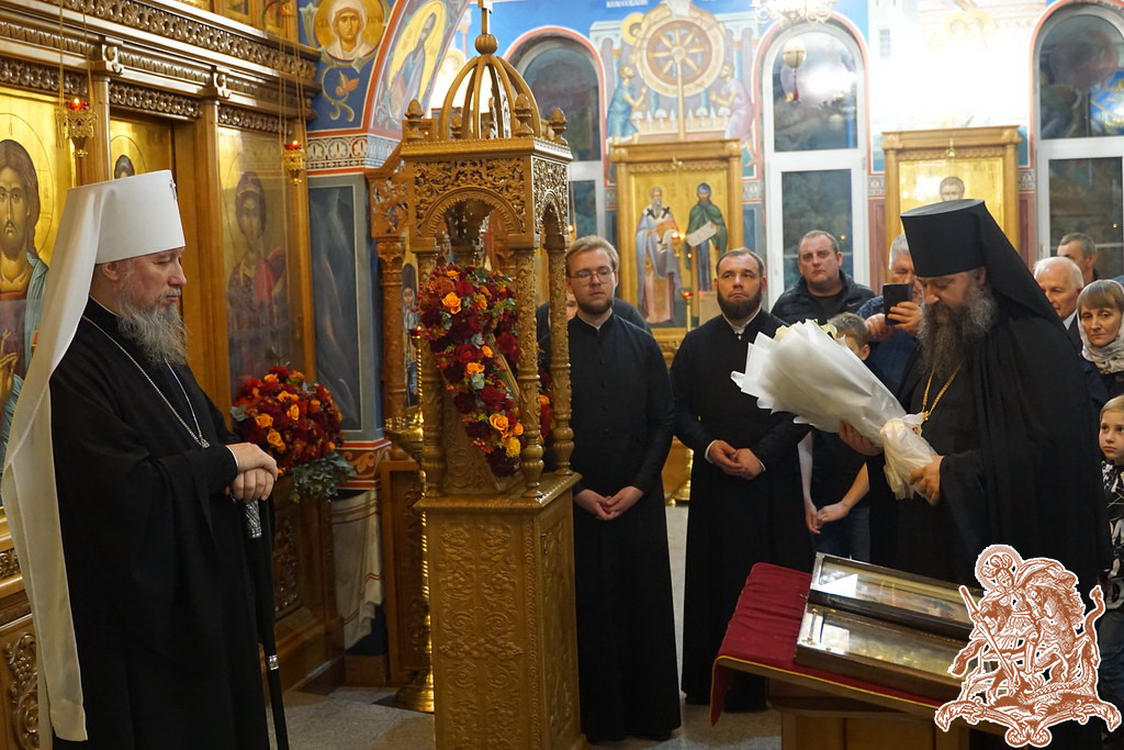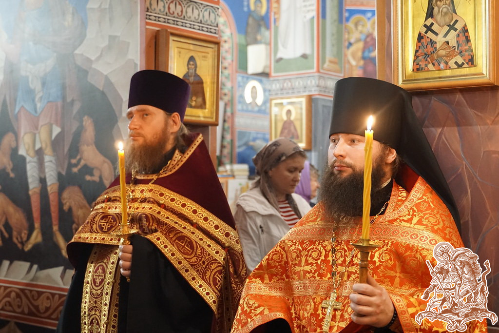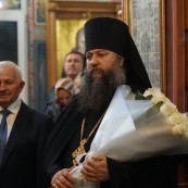 Его Высокопреосвященству сослужили: настоятель храма иеромонах Спиридон (Федотов), иерей Павел Лозовой, иеромонах Александр (Дерягин), иеромонах Даниил (Дерягин), иерей Вячеслав Миронов, диакон Андрей Тесля, диакон Никита Мельничук.