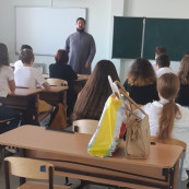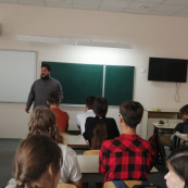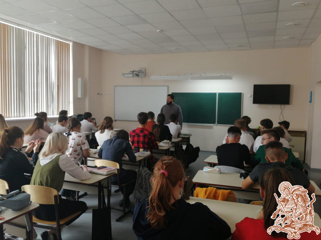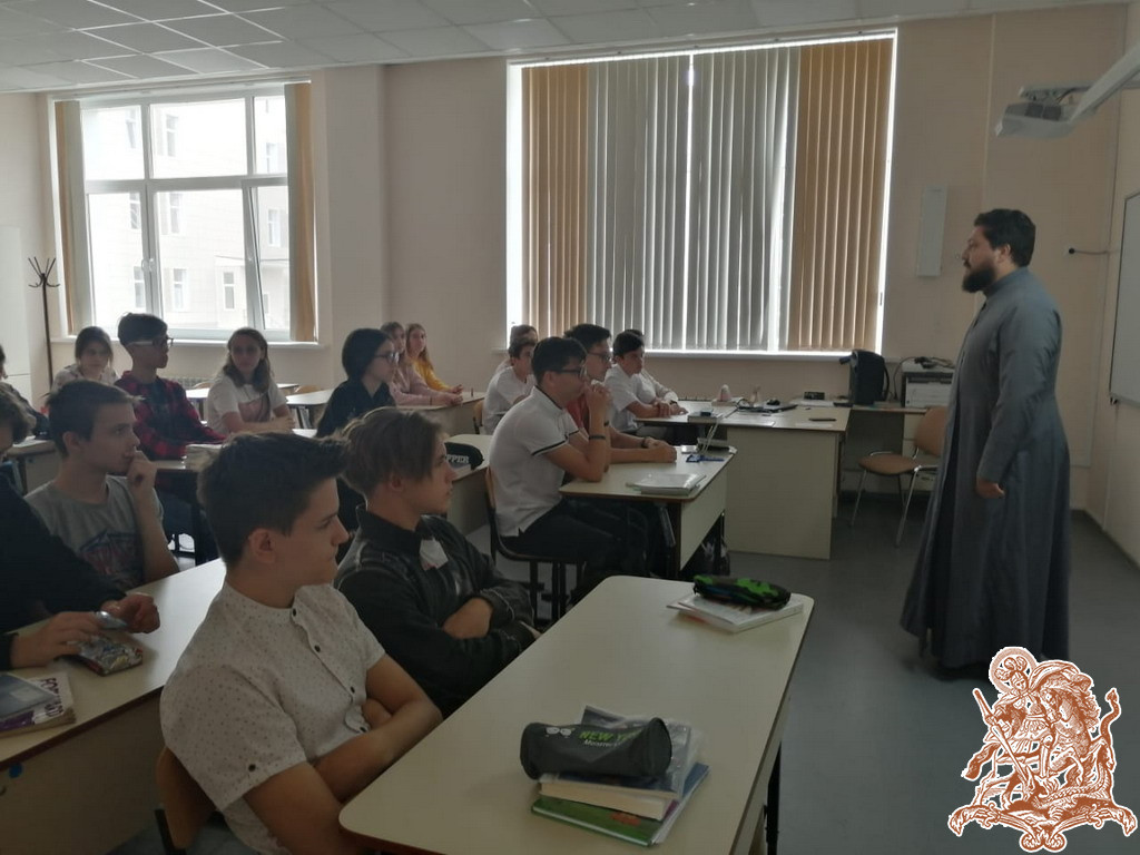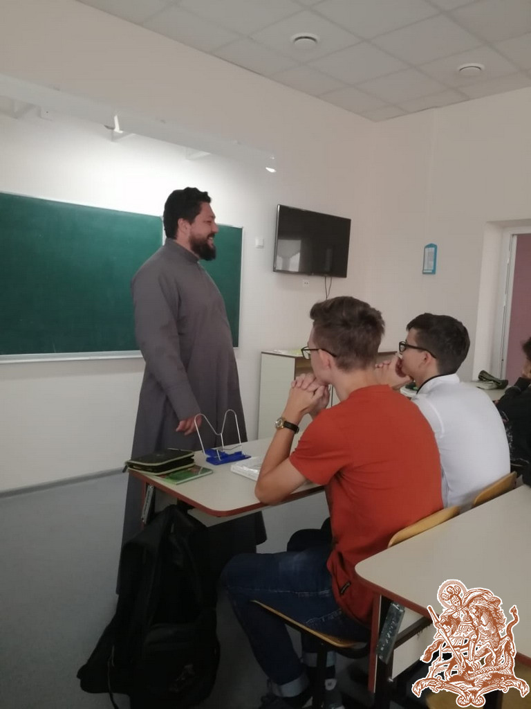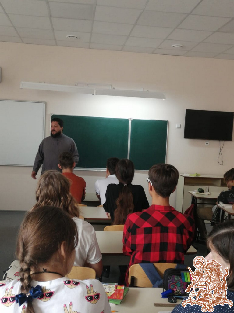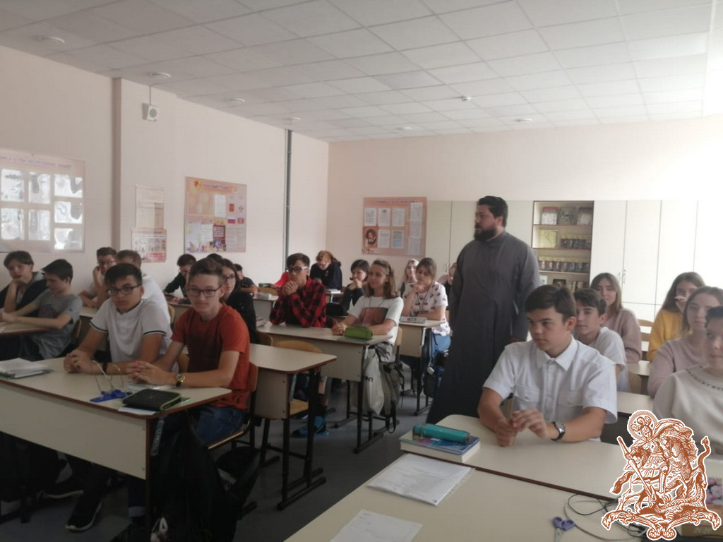 19 сентября 2020 г., в преддверии праздника Воздвижения Креста Господня клирик Георгиевского храма хутора Ленина диакон Михаил Степанков провел уроки с учащимися 9-х классов казачьей школы СОШ №61 хутора Ленина города Краснодара.