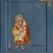 Однако и притча, которая всегда есть богословие в образе, должна иметь правильный смысл, – если мы говорим о церковном искусстве. Поэтому здесь хотелось бы видеть больше цельности: у бедного Петра почему-то крохотные ножки, а табуреточка, на которой он сидит, просто незаметна… Конечно, в иконописи много смысловых деформаций, но они должны иметь свое художественно-смысловое объяснение. Петр может даже падать со стула – в знак своего греха, но тогда само сиденье должно быть различимо!